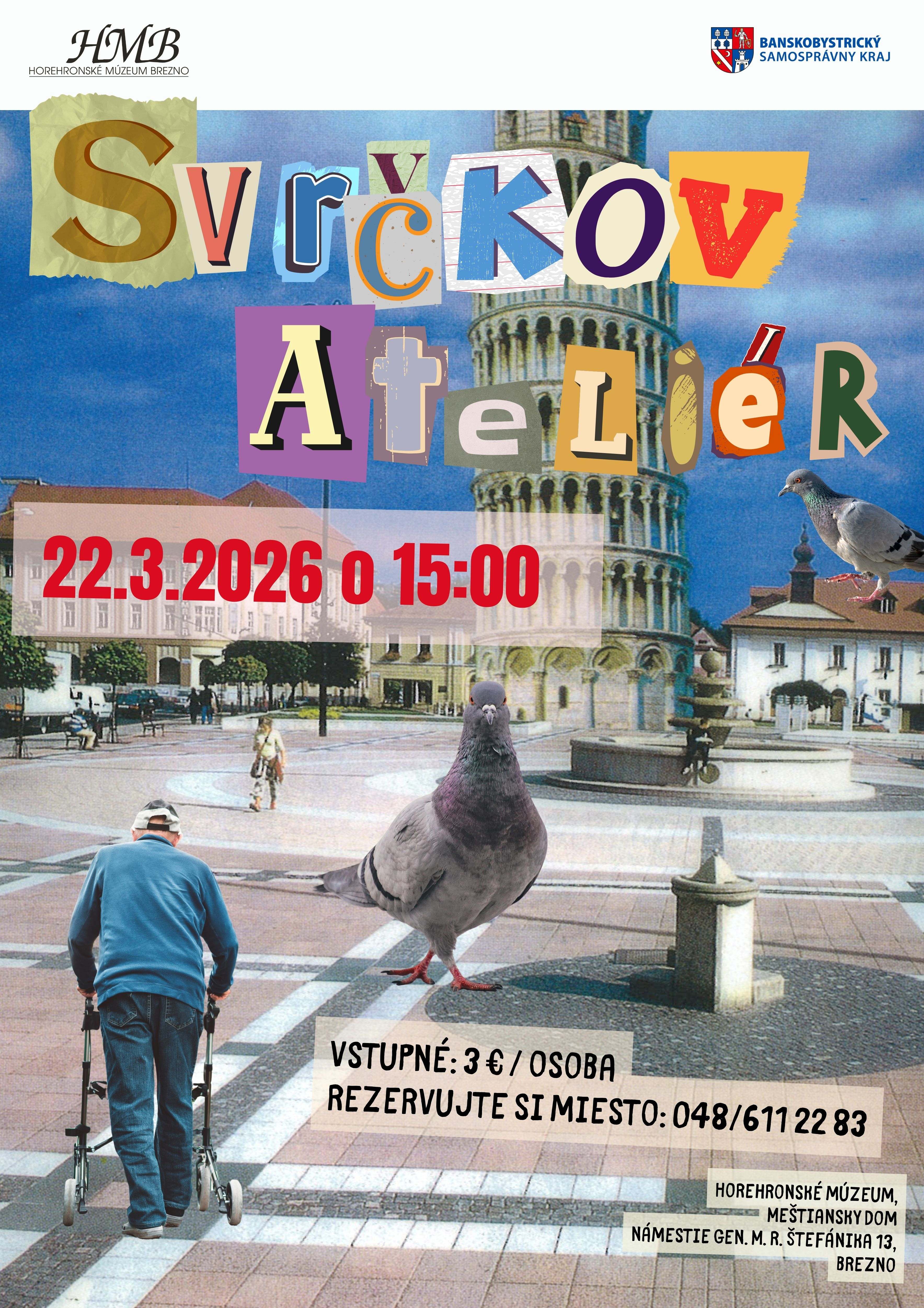 Horehronské múzeum pozýva verejnosť na kreatívne podujatie Svrčkov ateliér, ktoré prinesie návštevníkom jedinečnú možnosť vyskúšať si tvorbu koláže priamo pod vedením skúseného autora. Tvorivá dielňa sa uskutoční v nedeľu 22. marca 2026 o 15:00 hod. v Meštianskom dome a je určená návštevníkom všetkých vekových kategórií, bez ohľadu na úroveň ich výtvarných zručností.